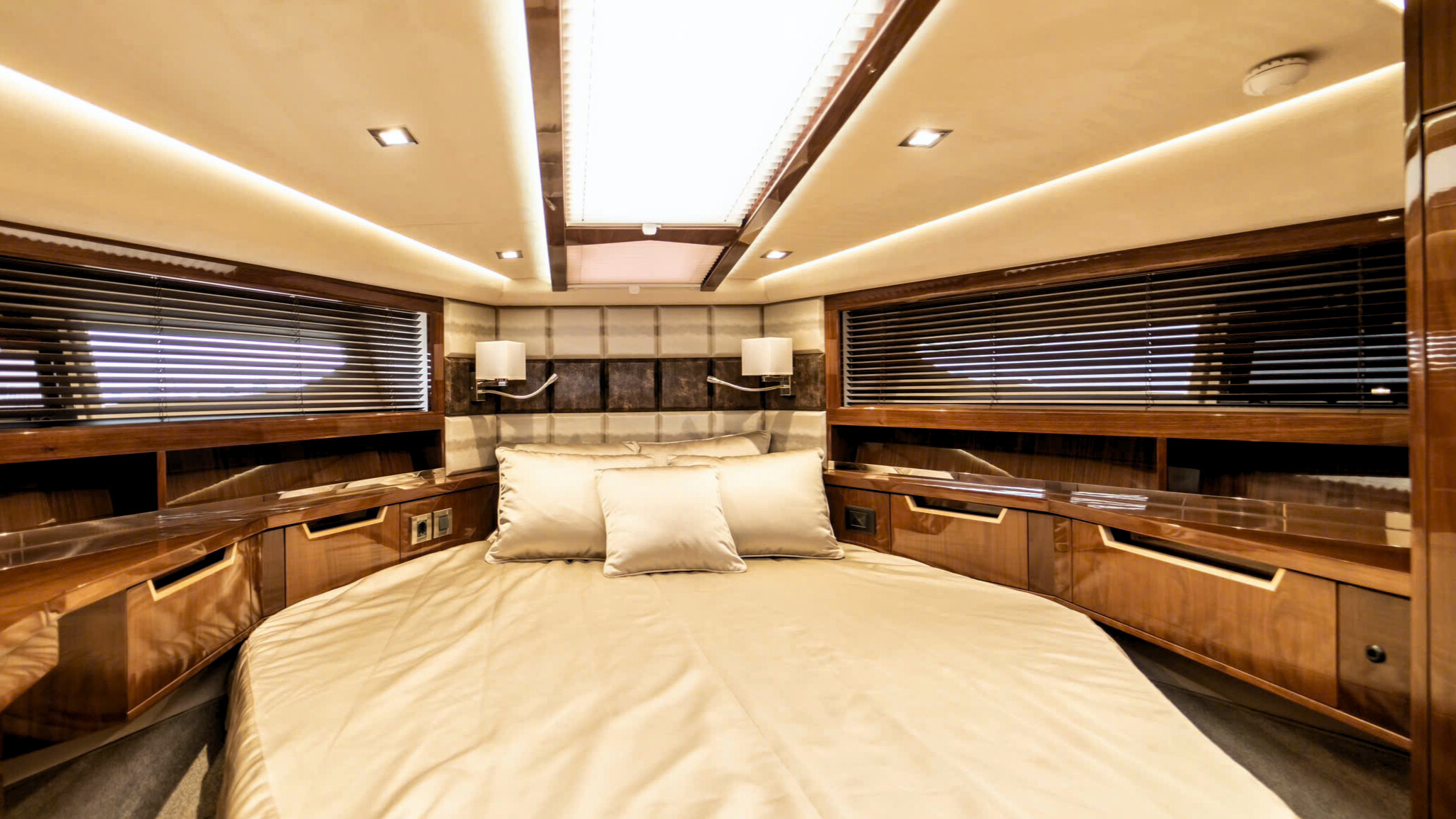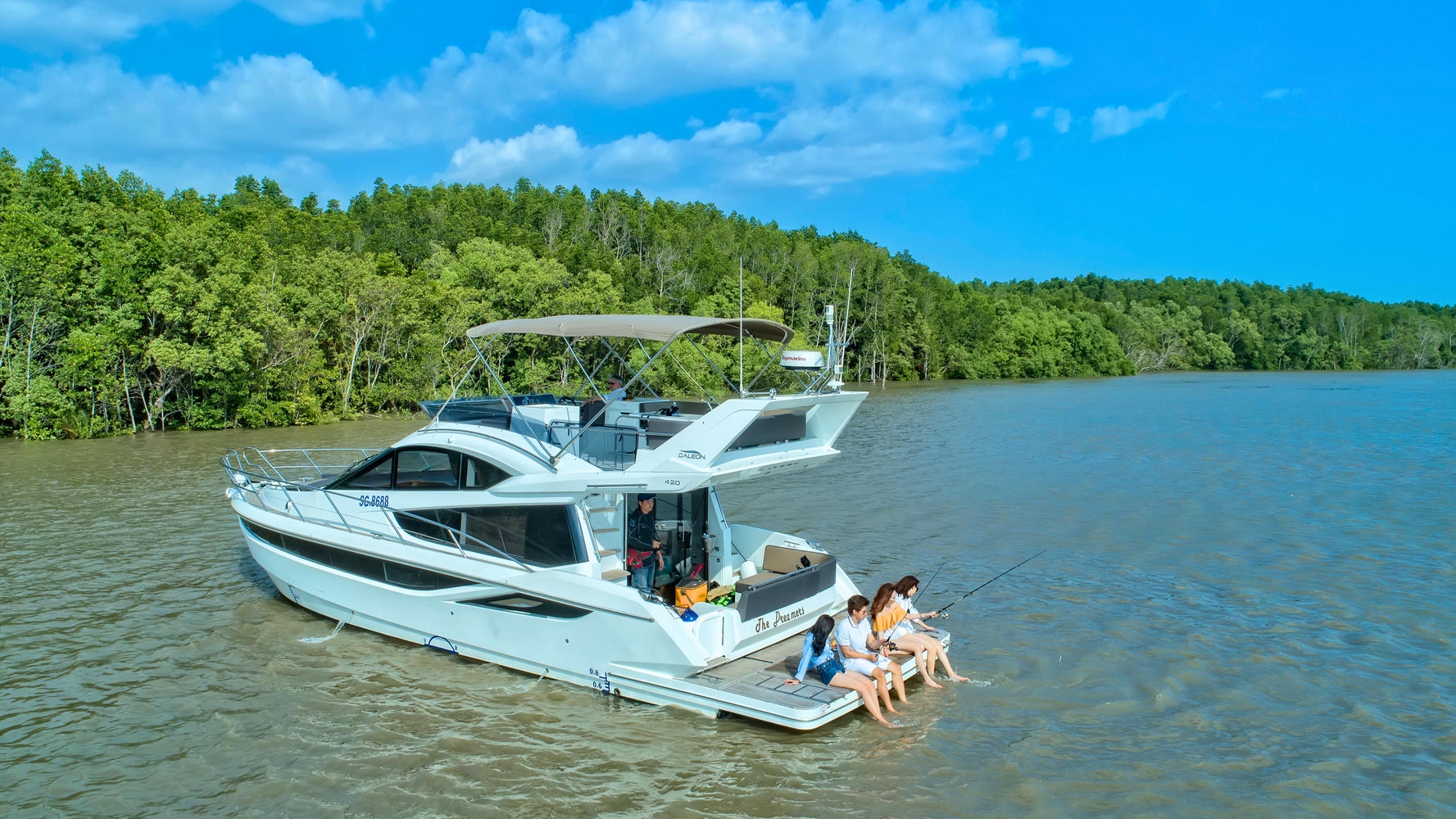 Embark on a journey where style and sophistication converge. From the spacious flybridge deck, you can immerse yourself in endless panoramic views. Inside is a cozy yet luxurious interior space, with 3 private cabins and a spacious entertainment area, perfect for gatherings with family or friends. Every detail is meticulously cared for to deliver a memorable yachting experience, where every moment becomes a part of beautiful memories.