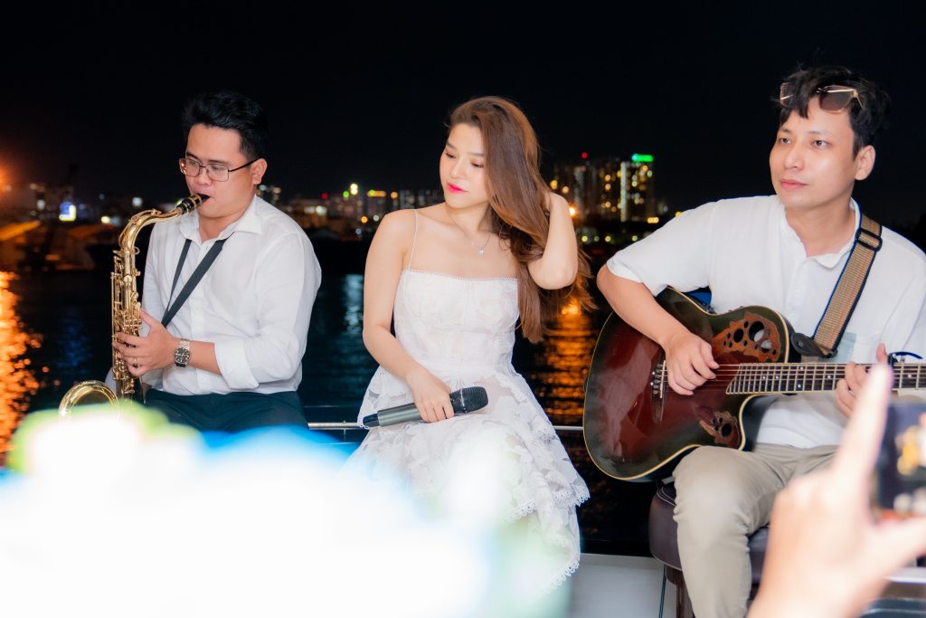 Ban nhạc sống và DJ sẵn sàng mang đến bầu không khí sôi nổi cho bữa tiệc, hoặc những giai điệu du dương cho khoảnh khắc thư thái. Tất cả đều được C.A.M Yacht linh hoạt đáp ứng để buổi tiệc tất niên diễn ra trọn vẹn và giàu cảm xúc.